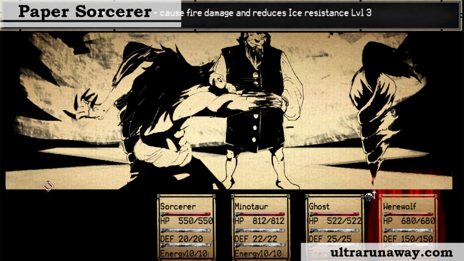 Paper Sorcerer is a stylish single player turn based RPG focused on strategy, party-building, and environmental puzzles. Fight with the skills and spells you’ve learned in a battle system that emphasizes strategy over grinding. Assemble a party of monsters and dark creatures to fight alongside you. Explore and solve environmental puzzles to unlock secret paths and find extra loot! A double-sided adventure, an RPG with adventure game elements.